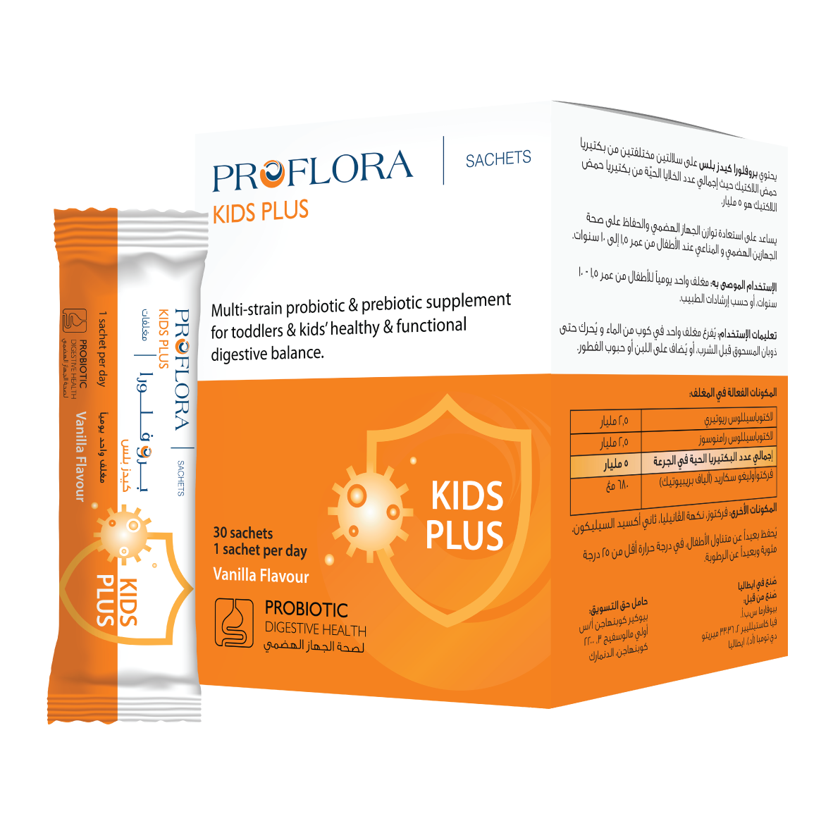 Proflora Kids Plus contains 2 different strains of lactic acid bacteria with a total cell count of 5 billion living lactic acid bacteria.
